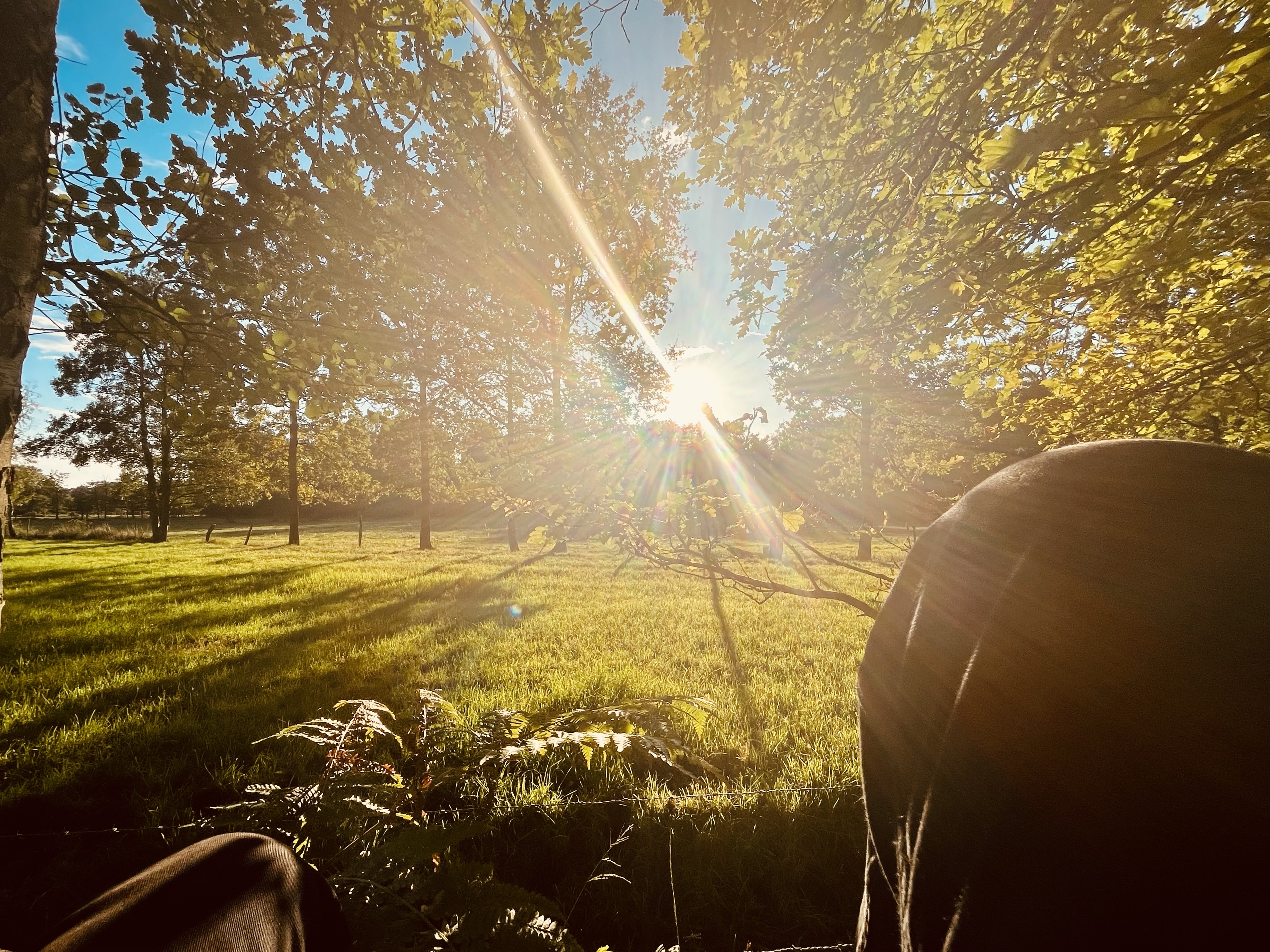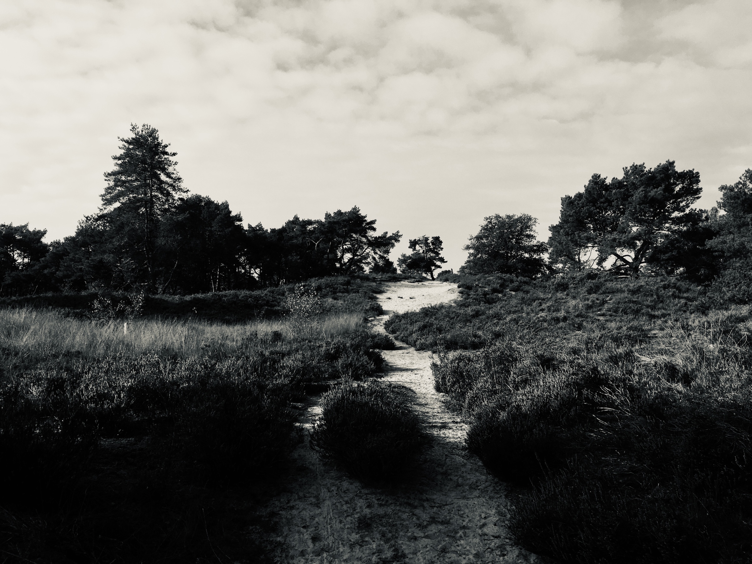 A. and I had benefited from mild autumn weather by enjoying a long walk in the Kalmthoutse Heide, Belgium. We had packed lunch, which we ate sitting atop a fallen tree just beyond this view. It was a beautiful day.