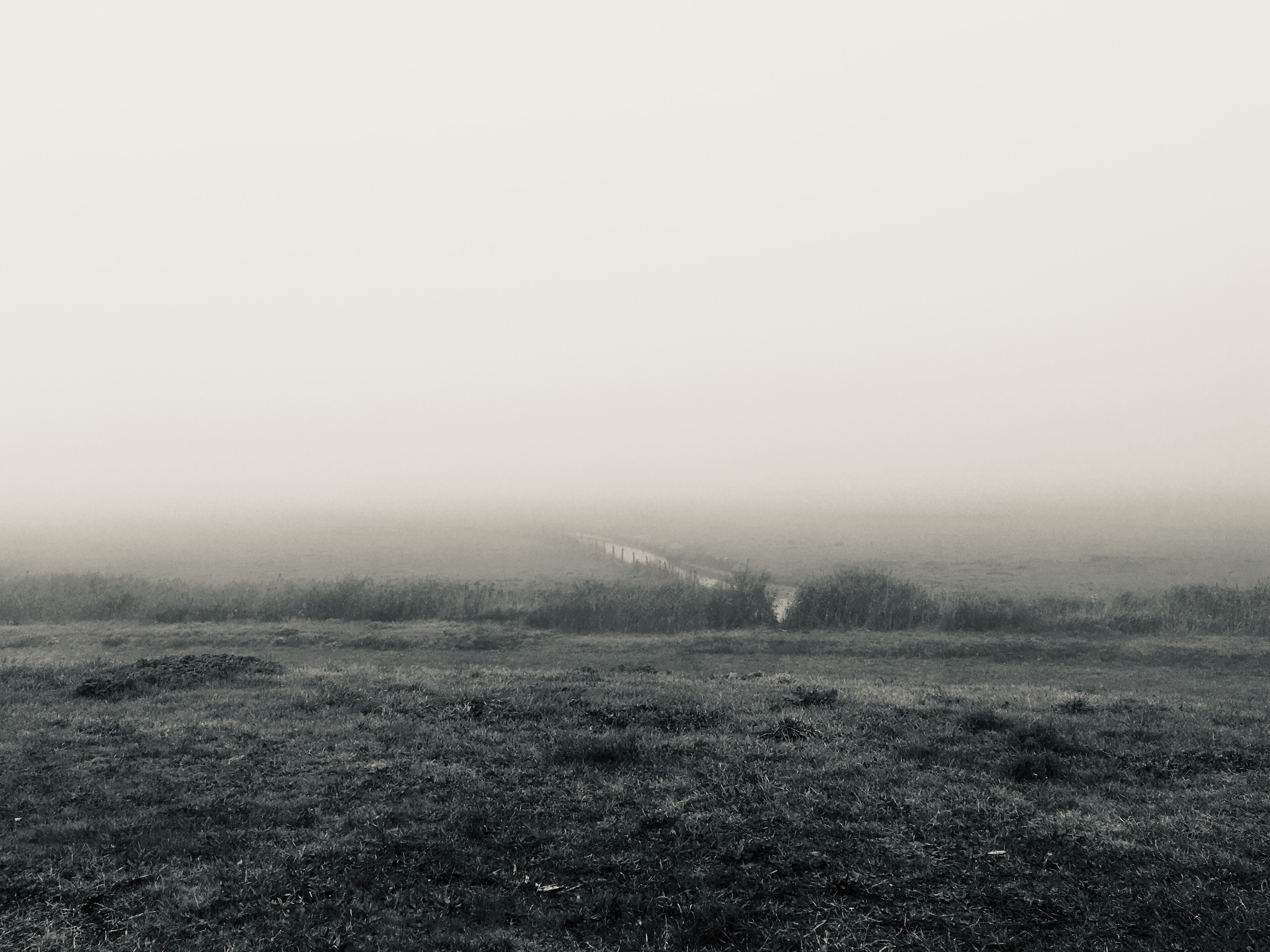 Mist hides the horizon of the Kruibeekse Polder, making what lies beyond seemingly continue forever.