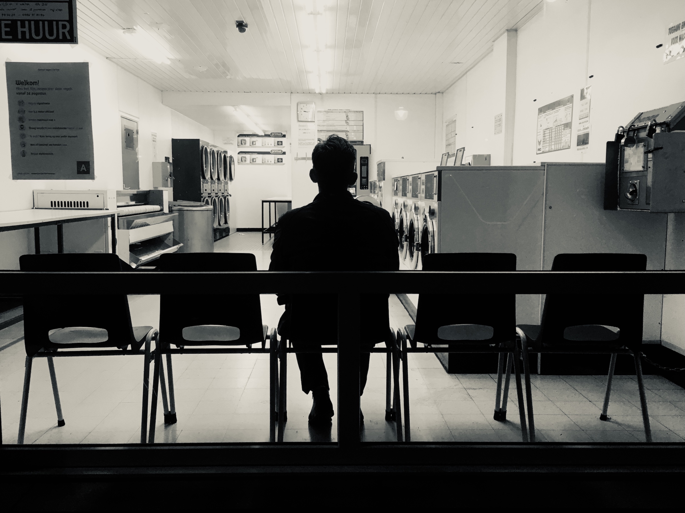 Here’s to mild inebriation, an eagerness to walk and discover, and my friend’s willingness to pose. This moment was captured in a vacant washing salon in Deurne, Belgium.